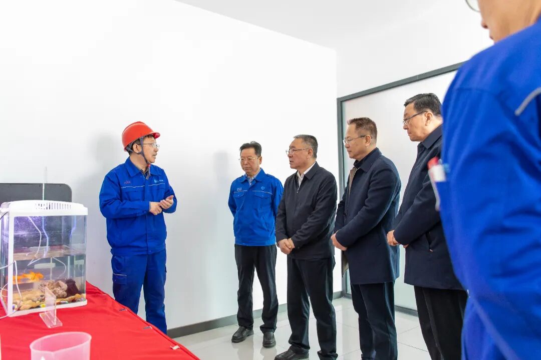 王俊明书记汇报了企业发展、科技创新成效及未来规划。他表示,渤化集团坚守“高端高质高效、绿色低碳循环、数字智能智慧、韧性安全”发展定位,实施“一体四翼、三地协同、四化联动、内外并举”战略,持续完善科技创新体系,加大研发投入,强化人才引育,深化关键技术攻关与成果转化。集团构建“研究总院+中试平台+创新创业基地”三层创新架构,推行“揭榜挂帅”、职务科技成果赋权、超额利润分享等激励机制,在高端氟材料、绿色化工、生物制造、新能源等领域取得一批自主创新成果。三大化工生产基地协同发力,产品远销海内外,为培育新质生产力提供坚实支撑。
