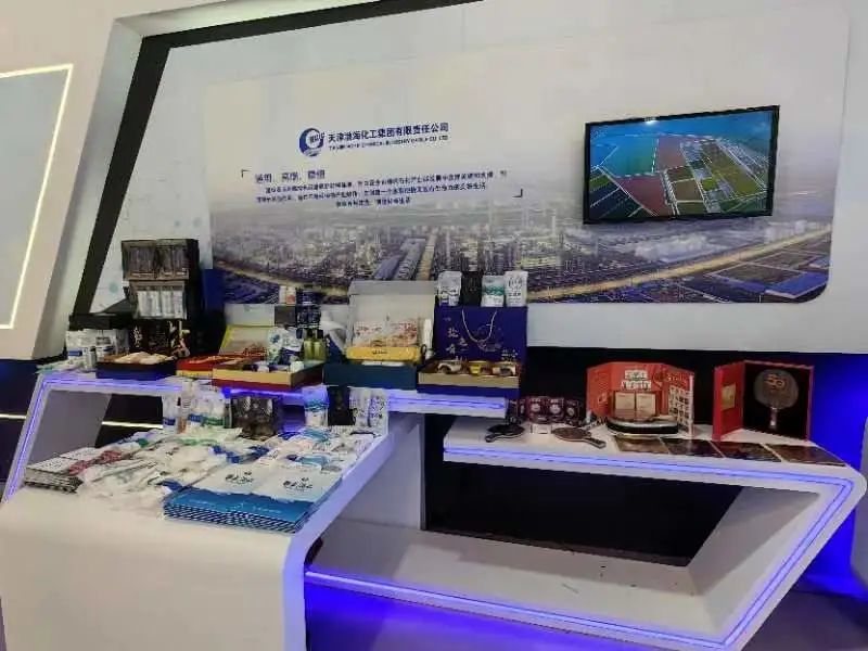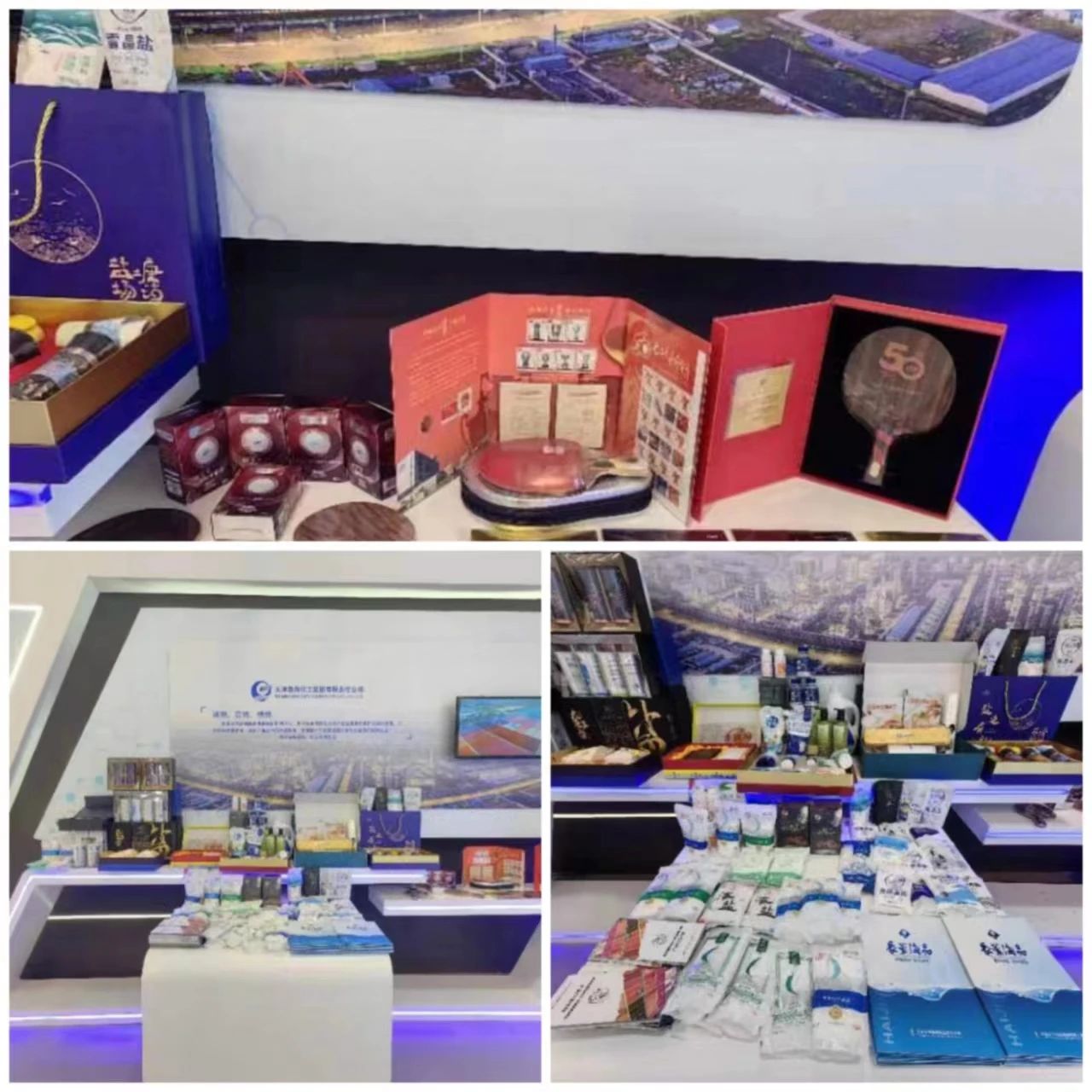 本次活动集团在天津实体馆中布展,以“图片+视频+实物+场景搭建”为手段,结合新型多媒体技术和现场活动,集中展示了渤化集团自主品牌的发展创新成就。主要参展展品包括729公司球拍、套胶等体育用品;汉沽盐场的食用盐系列、海盐洗护系列、小肽系列、盐之灸;海晶集团的塑封产品、氟化工等集团特色产品。